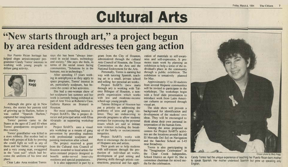 1994: I was active in the community, especially in the arts. The first proposal I ever wrote was successful with the assistance of activist Richard Reyes better known as Pancho Claus.